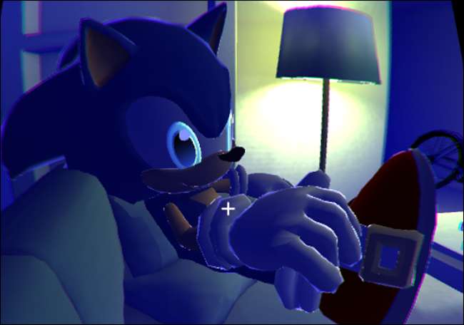 しかし、これはほんの始まりに過ぎません。 Sonic Movie Makerがあります。ここでは、カメラを持ち歩き、無生物のSonicモデルをあらゆる種類の状況に投げ込みますが、ここで概説するには露骨すぎるものもあります。そして、マイルームメイトソニックがあります。これは、テレビを見ながらソファでソニックの横に座って、くすぐって彼を誘惑する一人称ゲームです。