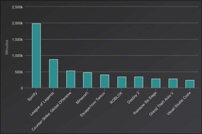 Discordが無数のゲームアプリやメディアアプリと統合され、カスタマイズ可能なオーバーレイと組み合わされていることを考えると、ほとんどのDiscordユーザーがコンピューターの前でバックグラウンドで実行しているのは当然のことです。実際、Spotifyのデスクトップミュージックプレーヤーは 次に高いアクティビティの2倍以上 Discordのユーザーの場合、ほとんどのユーザーが閲覧、作成、再生、または作業している間、バックグラウンドでDiscordを実行していることを明確にします。 Discordユーザーに10番目に人気のあるアプリケーションはVisualStudio Codeであり、このアプリケーションがプロのコラボレーションにどれほど役立つかを示しています。