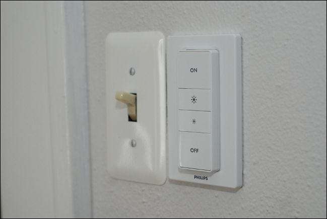 Hue DimmerSwitchとHueWhite電球が付属するキットを購入できます 35ドルで 、そしてそれは電球をねじ込み、メインスイッチでそれをオンにし、リモコンからバッテリータブを引き出し、そして即座にライトを制御することができるのと同じくらい簡単です。設定には文字通り30秒かかります。