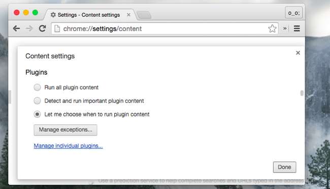 웹 브라우저에서 클릭 투 플레이 플러그인 옵션 활성화 . 이렇게하면 웹 페이지가 더 빨리로드되고 CPU주기와 배터리 전원이 절약됩니다. 또한 중요한 보안 이점이 있습니다. 적절한 이유가있을 때만 플러그인을로드하도록 허용하므로 공격자는 백그라운드에서 브라우저 플러그인의 결함을 악용 할 수 없습니다.