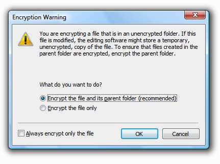 이 옵션을 선택하면 파일 만 암호화할지 아니면 상위 폴더도 암호화할지 묻는 다음 대화 상자가 표시됩니다. 파일 만 기본값으로 선택할 수도 있습니다.