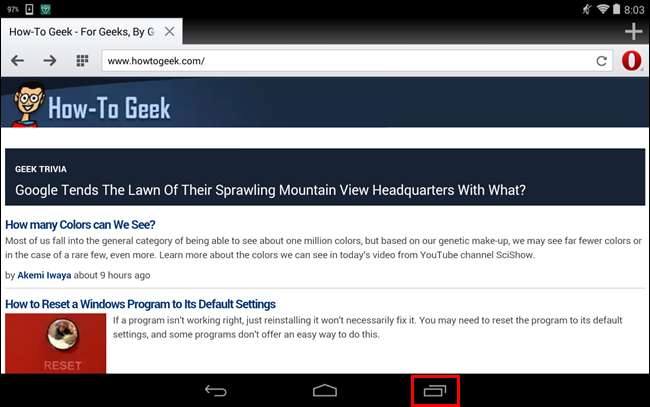 참고 :이 기사에서는 Nexus 7을 예로 사용했습니다. Samsung Galaxy 장치를 사용하는 경우 홈 버튼을 길게 누릅니다.
