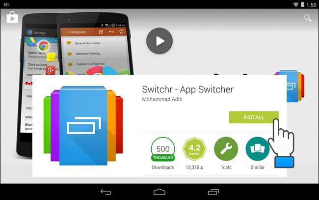 예를 들어 Google Play 스토어에서 무료로 사용할 수있는 Switchr라는 앱을 보여 드리겠습니다. Play 스토어에서 Switchr를 찾아 설치를 터치하여 앱을 설치합니다.