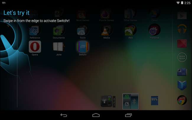 스위처를 활성화하기 위해 가장자리에서 안으로 스 와이프하라는 화면이 표시됩니다.