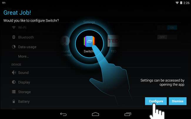Switchr를 활성화하면 앱에서 Switchr를 구성 할 것인지 묻습니다. 화면 오른쪽 하단의 구성을 터치합니다.