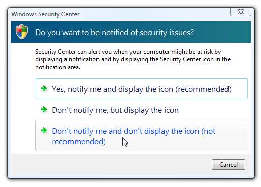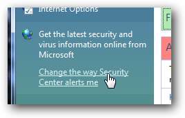 "Security Center에서 알림 방법 변경"링크를 클릭합니다.