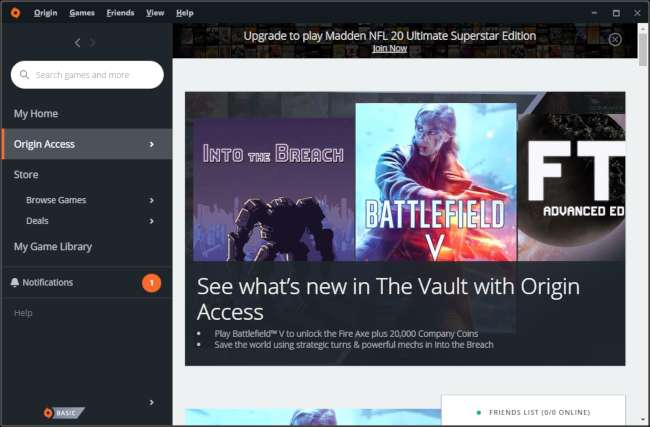 - EA Origin Access 기본 : 우리가보고있는 서비스 중 가장 오래된 서비스는 2016 년에 출시되어 다 계층 서비스가되었습니다. 첫 번째 계층은 Origin Access Basic으로 월 $ 5 또는 1 년에 $ 30를 지불 할 수 있습니다. Basic을 사용하면 EA가 "The Vault"라고 부르는 게임에 액세스 할 수 있습니다.이 게임에는 다음과 같은 200 개 이상의 타이틀이 포함 된 PC 용 게임이 많이 있습니다. 배틀 필드 W , 배틀 필드 I , 스타 워즈 배틀 프론트 II , 및 매든 19 . 또한 Origin 회원은 Origin 게임 스토어에서 구매 한 항목의 10 %를 할인받습니다.
