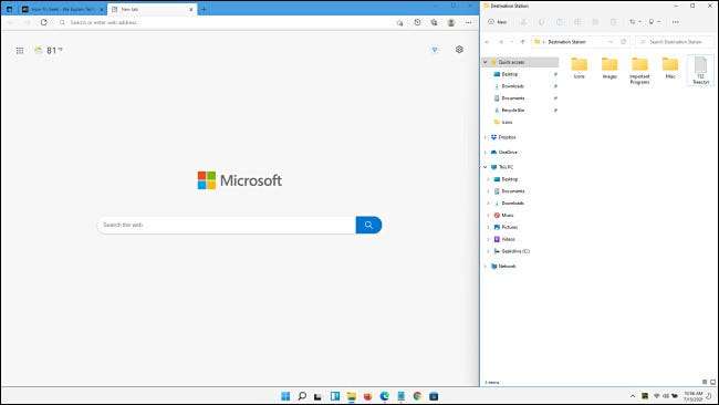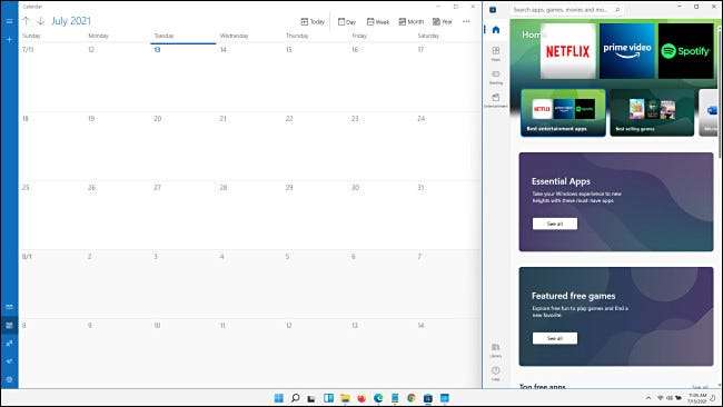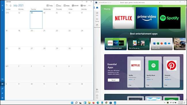 [삼] 다음은 Windows 11에 포함 된 6 개의 스냅 레이아웃을 모두 볼 수 있습니다. 예제 Windows를 사용하여 함께 사용할 수 있습니다. 실제로 각 레이아웃은 다른 멀티 태스킹 상황에 이상적입니다. 당신이 당신의 필요에 맞는 것을 찾을 때까지 다른 레이아웃을 실험하고 싶을 수도 있습니다.50/50 나란히
