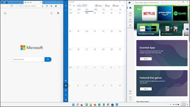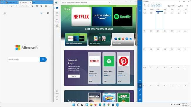 그리고 마지막으로,이 윈도우 11 스냅 레이아웃 위치에 당신을 수 있도록 세 개의 창을 나란히 화면의 중앙에 하나의 넓은 창 (각 촬영 최대 수직 공간).