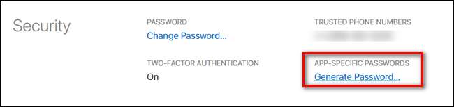 다음에서 Apple 계정에 로그인합니다. appleid.apple.com . 기본 장치로 전송 된 2 단계 식별 코드를 입력하여 로그인을 확인하십시오. 로그인 한 후 Apple ID 제어판에서 "보안"이라고 표시된 섹션을 찾아 아래에 표시된대로 "암호 생성"을 클릭합니다.