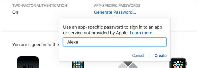 메시지가 표시되면 앱 비밀번호 'Alexa'라벨을 지정하고 '만들기'를 클릭합니다.