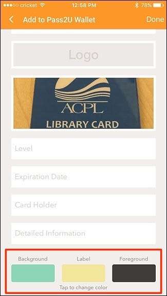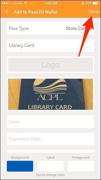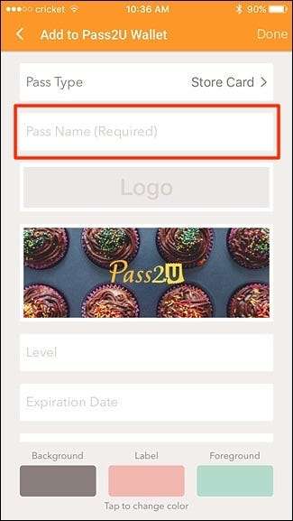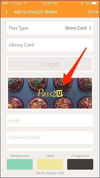 나머지는 완전히 선택 사항이지만 디지털화 된 패스의 모양을 사용자 지정하려는 경우 사용자 지정 기능을 활용하는 것이 좋습니다. 시작하려면 Pass2U 로고를 탭하세요.