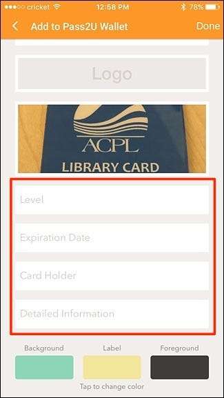 그런 다음 아래로 스크롤하여 만료일 및 관련 정보와 같이 스캔중인 패스 또는 카드에 대한 정보를 입력합니다.