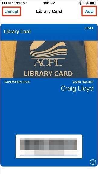 다음 화면에서 패스 미리보기가 표시됩니다. 마음에 들면 상단의 "추가"를 탭하세요. 변경하려면 "취소"를 선택하십시오.