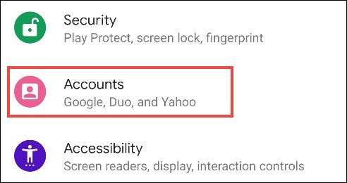그런 다음 아래로 스크롤하여 "계정"절을 선택하십시오.