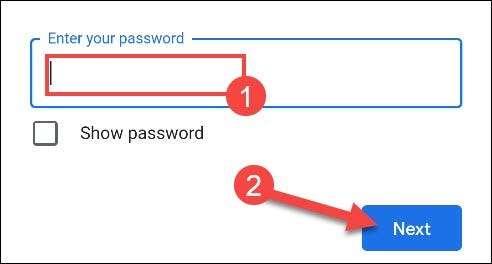 텍스트 상자에 암호를 입력하고 "다음"을 누릅니다. 당신이 가지고 있다면 2 요소 인증 활성화하면 암호 뒤에 추가 보안 단계가 추가되었습니다.