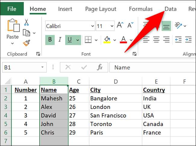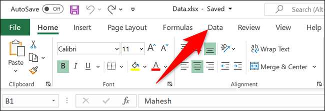 Excel의 리본에서 "데이터"탭을 클릭하십시오.