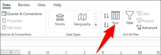 "데이터"탭에서 "정렬 & amp; 필터 "섹션에서"정렬 "을 클릭하십시오.