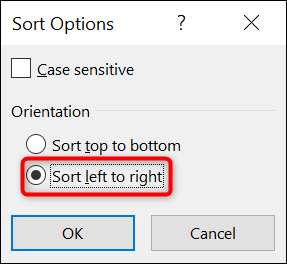 "정렬 옵션"상자가 표시됩니다. 여기서 "왼쪽에서 오른쪽 정렬"을 선택하고 "확인"을 클릭하십시오.