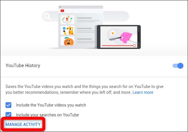 "YouTube 기록"블록까지 아래로 스크롤하고 "활동 관리"옵션을 선택합니다.