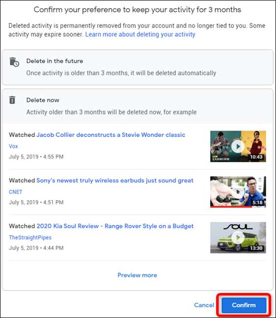 위치 기록 및 '웹 및 앱 기록'에 대해 유사한 자동 삭제 설정을 사용할 수 있습니다. 이는 단순한 개인 정보 보호 설정이 아닙니다. 정기적으로 기록 삭제를 선택하면 Google에서 삭제 된 YouTube 기록을 사용하여 맞춤 동영상 맞춤 설정을하지 않습니다.