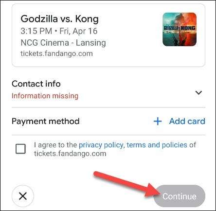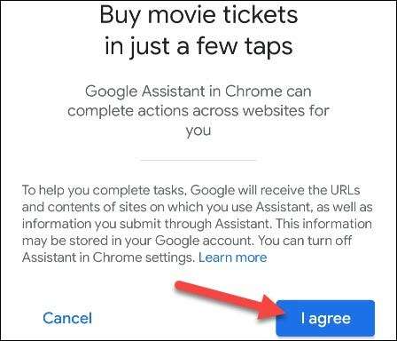 Chrome에서 Google Assistant를 사용하여 티켓을 구매하도록 동의해야합니다. 계속하려면 "동의 함"을 누릅니다.