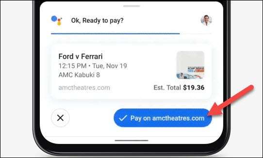 마지막으로 모든 것을 확인하도록 요청받을 것입니다. Google 도우미가 거래를 완료하려면 "[티켓 웹 사이트 지불]을 선택하십시오.