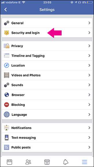 Facebook에 로그인하고 설정> 보안 및 로그인으로 이동합니다. 직접 갈 수 있습니다. 이 링크로 .