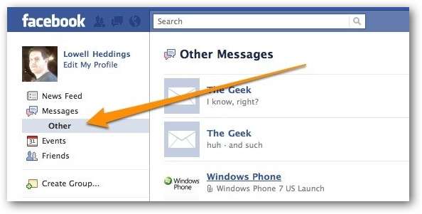 먼저 메시지로 이동 한 다음 "기타"폴더를 클릭합니다.