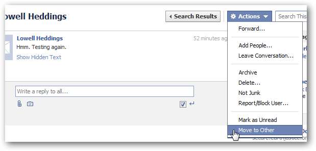 폴더에서 메시지를 찾으면 해당 메시지를 연 다음 작업 메뉴를 사용하여 "기타로 이동"옵션을 선택합니다.