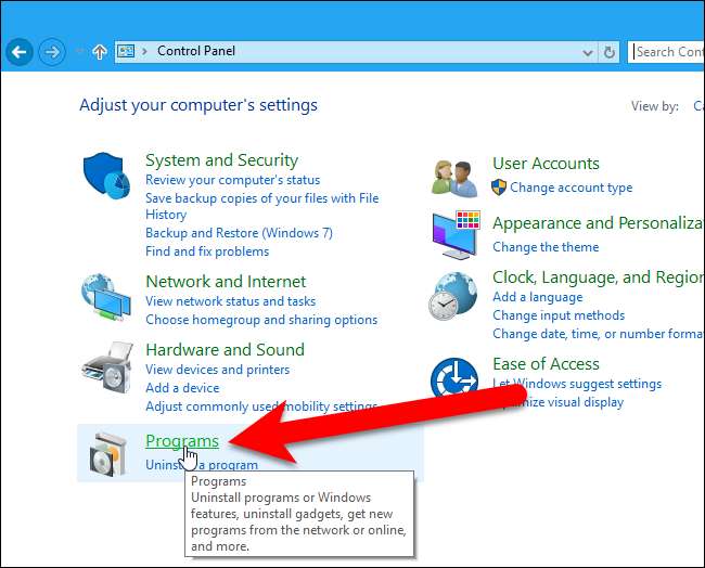 제어판 화면에서 "프로그램"범주를 클릭합니다.
