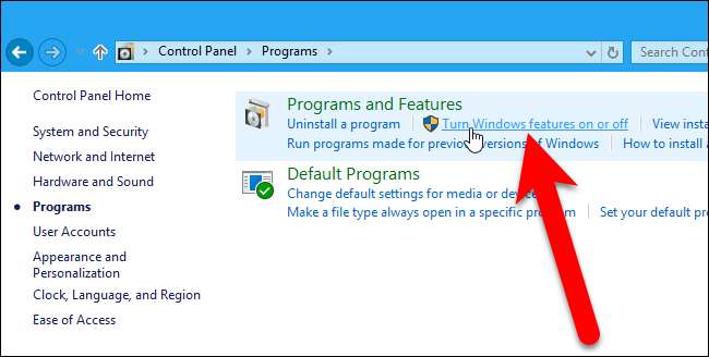 프로그램 화면의 프로그램 및 기능 섹션에서 "Windows 기능 켜기 또는 끄기"링크를 클릭합니다.