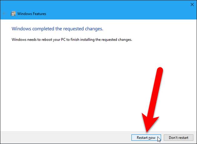 변경 사항을 적용하려면 컴퓨터를 재부팅해야합니다. 다시 시작할 준비가되지 않은 경우 "다시 시작하지 않음"을 클릭 한 다음 준비가되면 수동으로 다시 시작합니다. 그렇지 않으면 "지금 다시 시작"을 클릭합니다.