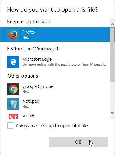 … Internet Explorer는 .htm 파일과 같은 관련 파일을 여는 프로그램 목록에서 사용할 수 없습니다.