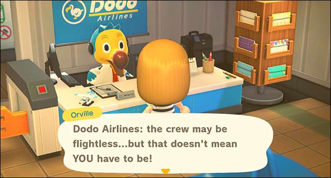 새로운 섬의 2 일째에 Tom Nook이 타운 플라자에 공항으로의 접근이 가능하다고 알릴 것입니다. Dodo Airlines로 가서 카운터 뒤의 새인 Orville과 대화하십시오.