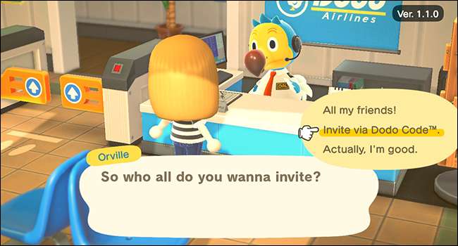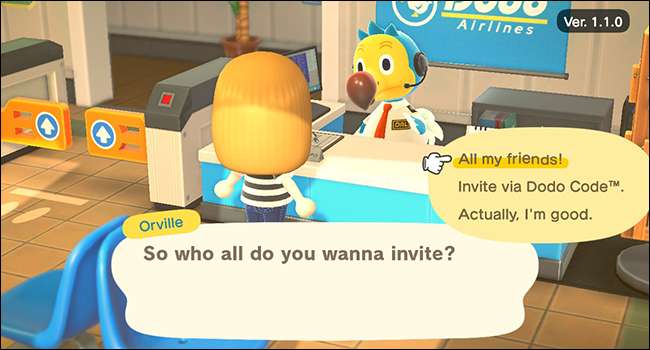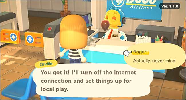 Orville은 게임을 저장하고 게이트를 엽니 다. Nintendo Switch 친구는 게임의 공항에서 유사한 메시지를 따라 섬에 가입 할 수 있습니다.