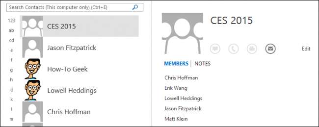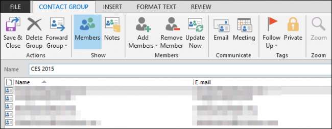 그룹에 이메일을 보내는 가장 빠른 방법은받는 사람 : 필드에 그룹 이름을 입력하는 것이므로이 경우 "CES 2015"를 입력하면 Outlook에서 해당 그룹의 모든 사람에게 메시지를 보내는 것을 알 수 있습니다. .