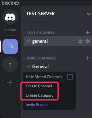 서버의 각 채널은 카테고리로 구성됩니다. 새 채널 또는 범주를 만들려면 채널 창에서 아무 곳이나 마우스 오른쪽 단추로 클릭하고 "채널 만들기"또는 "범주 만들기"명령을 클릭합니다.