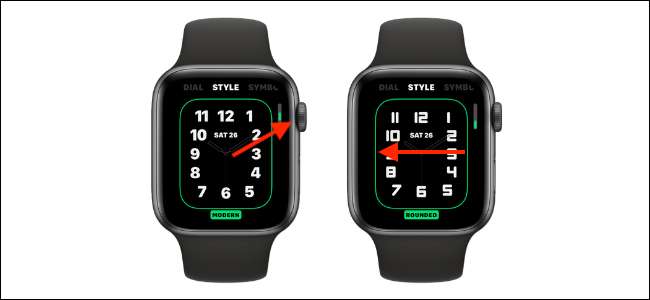 Apple Watch에서 시계 얼굴을 사용자 정의하려면 해당 얼굴로 전환하십시오. Apple Watch 화면의 왼쪽 또는 오른쪽에서 스 와이프하여 얼굴을 변경할 수 있습니다.