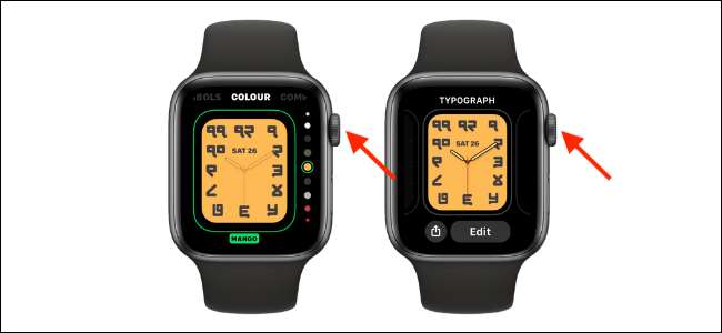 시계 얼굴을 사용자 정의 할 때 디지털 크라운을 눌러 변경 사항을 저장 한 다음 다시 눌러 시계 얼굴로 돌아갑니다.