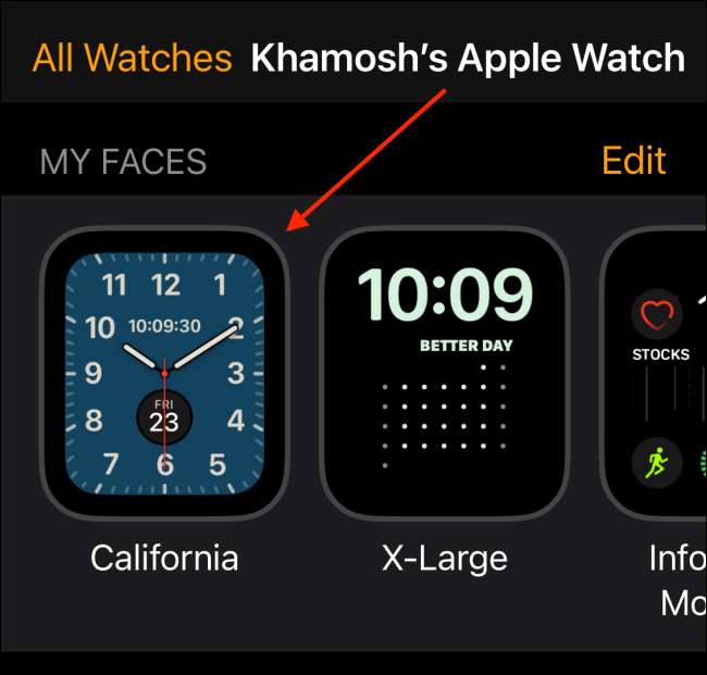 "내 얼굴"섹션에서 사용자 정의하려는 시계 얼굴을 선택하십시오.