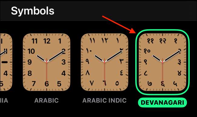 다음으로 숫자의 스타일을 변경하려면 "기호"섹션을 통해 스 와이프합니다. 알약, 로마, 캘리포니아, 아랍어, 아랍어 지적, 아랍어, 아랍어 인형 또는 Devanagari를 선택할 수 있습니다.