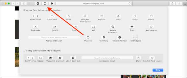 기본적으로 Safari 도구 모음에는 URL 표시 줄 및 탐색 버튼과 함께 활성화 된 모든 확장 아이콘이 표시됩니다.