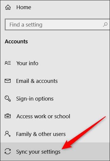 계정 페이지의 왼쪽에서 "설정 동기화"를 클릭하십시오.
