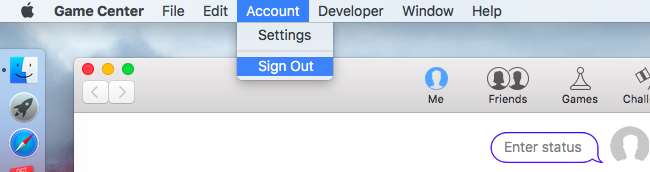 Game Center에서 로그 아웃하려면 계정 메뉴를 클릭하고 '로그 아웃'을 선택하세요. Game Center는 더 이상 Apple ID로 로그인되지 않으므로 알림, 초대, 친구 요청 및 기타 Game Center 항목이 표시되지 않습니다.