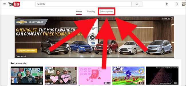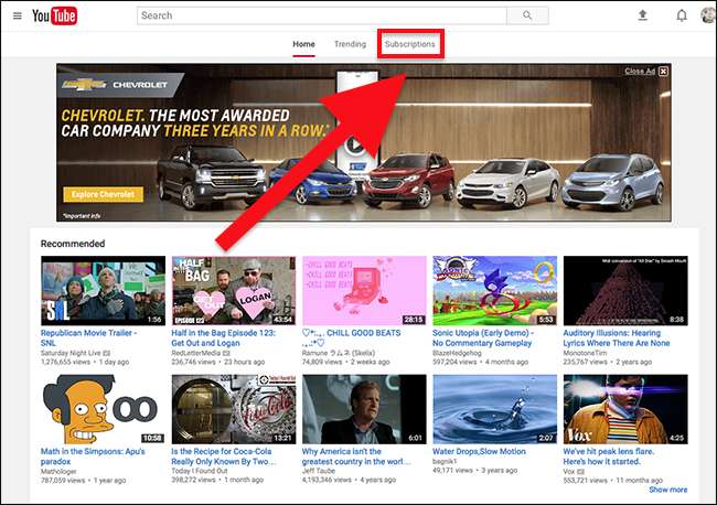 구독 만 보는 가장 간단한 방법은 구독 페이지로 이동하는 것입니다. 위에 표시된 YouTube 홈페이지에이 페이지에 대한 링크가 있습니다. 구독 페이지에는 구독 한 채널의 최신 동영상 만 표시됩니다.