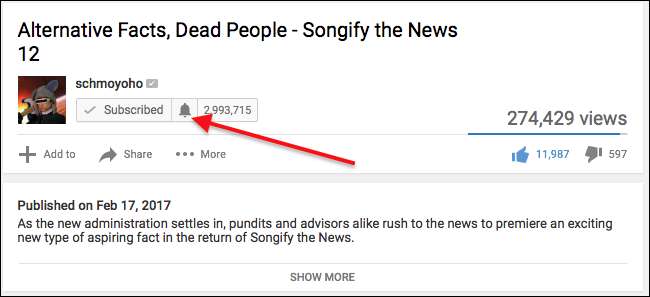 새로운 동영상을 놓치고 싶지 않은 YouTube 채널이 몇 개있는 경우 해당 채널에 대한 알림을 켤 수 있습니다. 채널의 벨을 클릭하기 만하면됩니다. 동영상 아래에이 종이 표시됩니다.