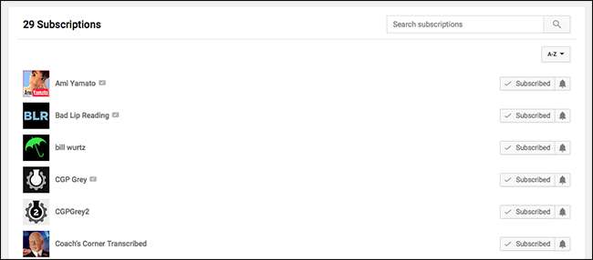 한 번에 여러 동영상에 대한 알림을 사용하려면 구독 관리자 . 구독 한 모든 채널 목록이 표시되며 원하는만큼 알림을 추가 할 수 있습니다.