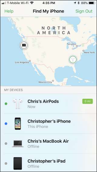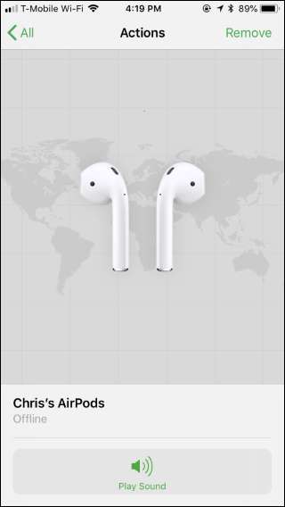 Apple에는지도에서 위치를 볼 수있는 "내 AirPods 찾기"도구가 있습니다. AirPods의 전원이 켜져 있으면 놀랍도록 큰 신호음이 울리도록 할 수도 있습니다.
