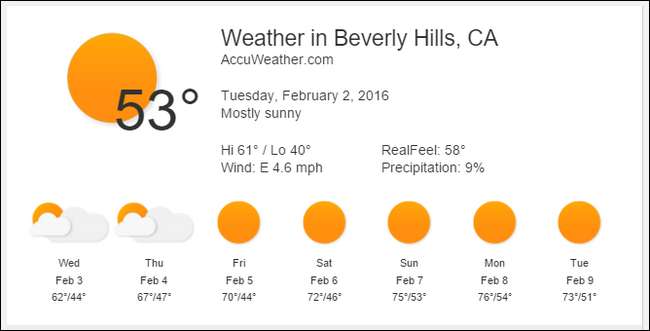 구성이 완료되면 "Alexa, 날씨 업데이트"또는 "Alexa, 날씨는 어때?"와 같은 변형이라고 말할 수 있습니다. 우편 번호에 대한 현재 날씨와 일기 예보를 확인할 수 있습니다. 구두 피드백 외에도 Alexa는 Alexa 앱에서 업데이트 카드로 정보를 푸시합니다 (위에서 볼 수 있음).